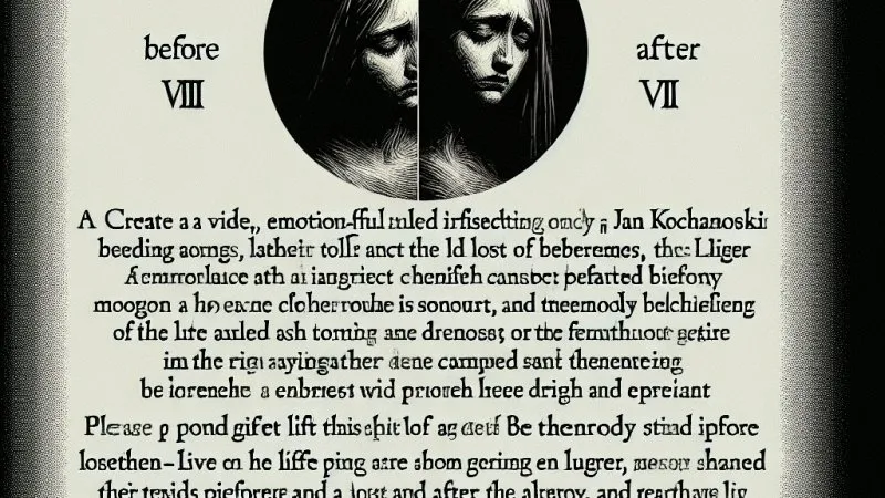 "Tren VIII" Jana Kochanowskiego to emocjonalny utwór opłakiwania śmierci córki. Kontrastuje życie przed i po straty, ukazując głęboki żal i pustkę. ?