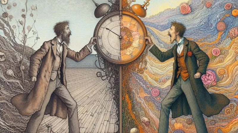 Intersubiektywna interpretacja obu tekstów pozwala dostrzec, jak różne formy sztuki mogą wpływać na nasze postrzeganie tego samego tematu. Rysunek Kolaczka, analityczny i mechaniczny, może wpłynąć na widza bardziej racjonalnie, skłaniając do refleksji nad deterministycznym aspektem czasu. Z kolei wiersz Pawlikowskiej-Jasnorzewskiej, pełen literackich niuansów i metafor, może poruszyć nas emocjonalnie i skłonić do głębszej, bardziej introspektywnej analizy życia jako mozaiki złożonej z ulotnych chwil i doświadczeń.