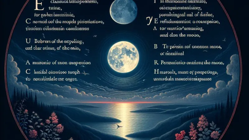 5. Przemijanie piękności księżyca Księżyc pojawia się na niebie na krótki czas, po czym znika z nadejściem dnia. Smutek podmiotu lirycznego z powodu przemijania księżyca odzwierciedla przemijanie samej natury piękna. Jest to temat często podejmowany w literaturze sentymentalnej, gdzie piękno jest ulotne i nietrwałe, co powoduje głęboki melancholijny nastrój.
