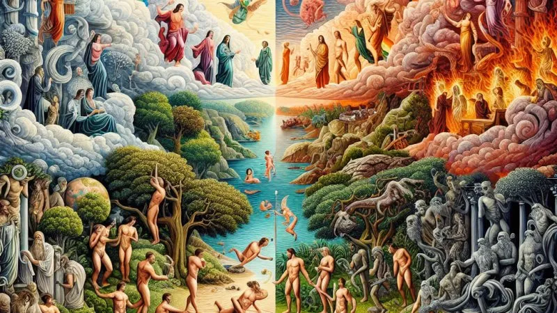 Ostateczne miejsce ludzi: W Biblii wierni mogą się spodziewać raju, piekła lub czyśćca, w zależności od swojego postępowania. Jest to system oparty na moralności i odpowiedzialności.Mitologia: W mitologii istnieją różne odpowiedniki, takie jak Tartarus czy Pola Elizejskie, jednak podstawą są czyny człowieka za życia, a jego ‘droga’ w życiu po śmierci jest bardziej symboliczna. Wierzenia te bazują na ziemskiej chwale i przeznaczeniu.