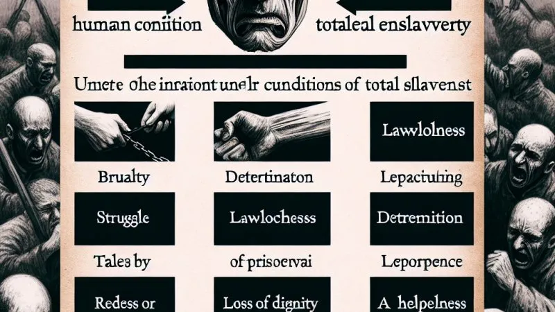 Podjęcie analizy dotyczącej ludzkich postaw w sytuacjach całkowitego zniewolenia stanowi wyzwanie, które możemy podjąć, badając dwie znaczące pozycje literackie: książkę Grudzińskiego pt. „Inny świat” oraz opowiadania Tadeusza Borowskiego. Obie te prace zawierają retrospektywny obraz życia obozowego, skupiając się na brutalności i bezprawiu, które narzucały swój rodzaj zniewolenia.