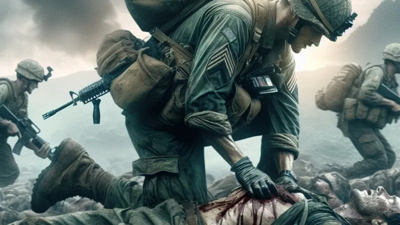 Film „Przełęcz ocalonych” to opowieść o odwadze Desmonda Dossa, który ratując życie bez użycia broni, pokazuje wartość humanizmu i wiary w trudnych warunkach wojennych. ?