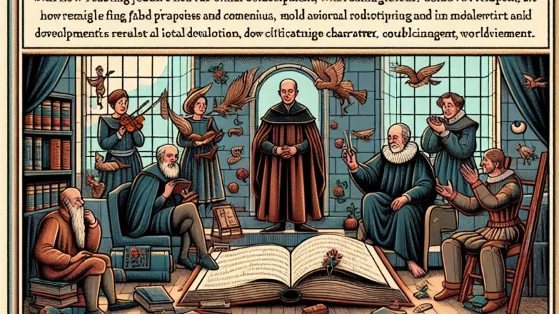 W renesansie także bajki odgrywały szczególną rolę, pełniąc funkcję edukacyjną i moralizatorską. Bajki czy przypowieści, często przedstawiające w formie miniaturowych opowieści uniwersalne prawdy życiowe, były narzędziem do przekazywania ważnych lekcji moralnych oraz kształtowania światopoglądu młodszych pokoleń. Choć zawierały prostą fabułę i czytelne przesłanie, zazwyczaj skrywały głębsze, filozoficzne przemyślenia na temat kondycji człowieka i istoty moralności. Tego rodzaju literatura pozwalała czytelnikowi na refleksję i samodoskonalenie, co jest jednym z celów dzisiejszej biblioterapii.