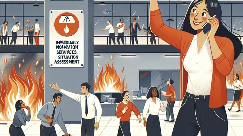 Pożar w miejscu pracy to poważne zagrożenie. Kluczowe są spokój, natychmiastowe powiadomienie służb, ocena sytuacji i bezpieczna ewakuacja. ???