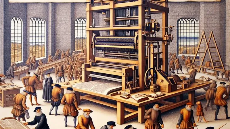 Wynalazek Johanna Gutenberga przyniósł fundamentalne zmiany. Wprowadzenie ruchomej czcionki umożliwiło szybkie i masowe drukowanie tekstów. Pierwsza drukowana książka, tzw. Biblia Gutenberga, wydana około 1455 roku, była dowodem, że typografia mogła produkować eleganckie i jednocześnie czytelne teksty. Koszty produkcji książek drastycznie spadły, a czas ich tworzenia uległ znacznemu skróceniu. Drukowane książki stały się dostępne dla szerszej publiczności, co przyczyniło się do demokratyzacji wiedzy.
