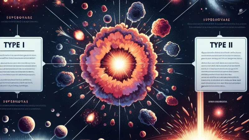 Supernowe dzielą się na dwie główne klasy: Typ I i Typ II, które różnią się przyczynami wybuchu jak i obecnością wodoru w spektrum światła emitowanego podczas eksplozji. Supernowe typu I są dalsze podzielone na subkategorie, takie jak Ia, Ib oraz Ic, w zależności od innych elementów widocznych w ich widmie lub od różnic w mechanizmie eksplozji.