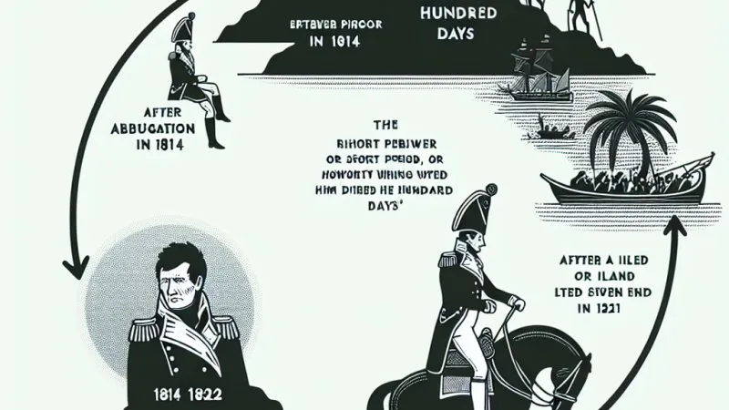 W kwietniu 1814 roku, po serii niszczycielskich kampanii i ostatecznej klęsce w wojnie z szóstą koalicją, Napoleon Bonaparte został zmuszony do abdykacji jako cesarz Francuzów. Był to początek niezwykle burzliwego okresu w jego życiu, który zakończył się jego śmiercią w 1821 roku. Po abdykacji Napoleon został zesłany na wyspę Elbę, niewielką wyspę u wybrzeży Włoch. Choć Elba była stosunkowo małą wyspą, Napoleonowi przyznano tam nominalny tytuł i pozwolono mu zachować pewne pozory władzy. Jego rezydencja była skromna, ale nie można jej było nazwać więzieniem – miał pewną swobodę i mógł reorganizować życie na wyspie.