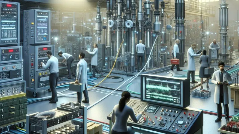 Proces testowania światłowodów w środowisku przemysłowym.
