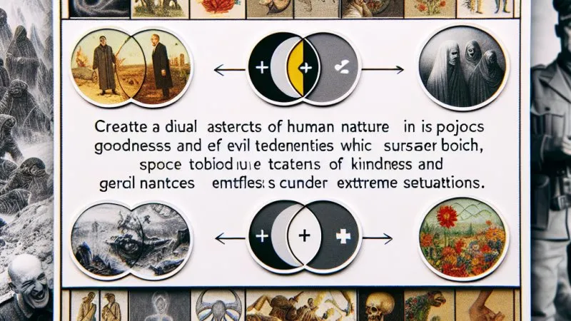 Obie te sytuacje pokazują, że nawet w najcięższych warunkach ludzie są w stanie zachować pewne cechy, które uznajemy za dobre – empatię, solidarność, troskę o innych. To może sugerować, że dobro i zło są obecne w każdym człowieku i to okoliczności oraz wybory, przed którymi stajemy, decydują o tym, która strona przeważy.