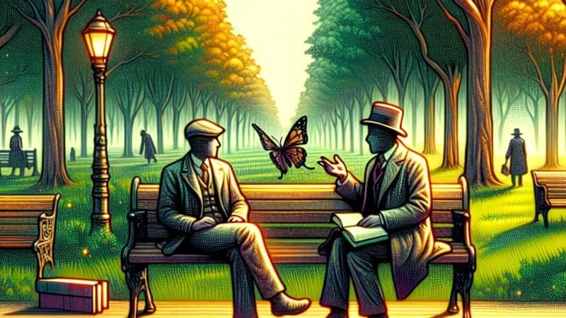 Wtedy, w momencie gdy wciągałem w siebie całą tą idylliczną atmosferę, zauważyłem nieznajomego mężczyznę. Był dobrze ubrany, z zadbanym, przysłowiowym jak u dżentelmena zarostem i melancholijnym spojrzeniem. Coś w nim wydało mi się znajome, choć na początku nie mogłem dokładnie określić, co. Stopniowo, jakby za sprawą nadprzyrodzonej siły, zaczynałem go rozpoznawać. To był Wokulski, bohater spod kart "Lalki". Moja wyobraźnia musiała się omylić, przecież to niemożliwe — myślałem. On jednak patrzył na mnie z delikatnym uśmiechem i jakby czytał w moich myślach.