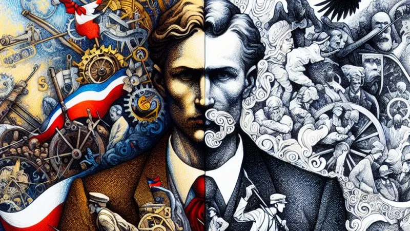 Pan Tadeusz, epopeja narodowa Mickiewicza, przedstawia głównego bohatera, młodego szlachcica, który wraca do rodzinnego dworu po latach spędzonych na emigracji. Tadeusz znajduje się w przysłowiowym rozdrożu między tradycją, a nowoczesnością. Jego sytuacja życiowa obrazuje konflikt między pragnieniem prostego, sielskiego życia a poczuciem obowiązku względem ojczyzny. Dylematy Tadeusza dotyczą zarówno kwestii osobistych jak i społeczno-politycznych, ukazując jego postać jako przesiąkniętą wewnętrzną sprzecznością i poszukiwaniem swojego miejsca w świecie.