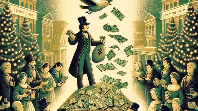W opowiadaniu Charlesa Dickensa "Opowieść wigilijna" możemy znaleźć wiele wątków i wartościowych treści, które wskazują na to, że pieniądze nie są kluczem do szczęścia. Głównym bohaterem tej opowieści jest skąpy staruszek Ebenezer Scrooge, który znany jest z tego, że oszczędza na wszystkim, nawet na sobie. Jego życie skupia się wyłącznie na zdobywaniu coraz to większego bogactwa, a całe życie poświęcone jest gromadzeniu majątku. Jednakże, historię tę można potraktować jako przestrogę przed skupianiem się jedynie na pieniądzach i bogactwie.