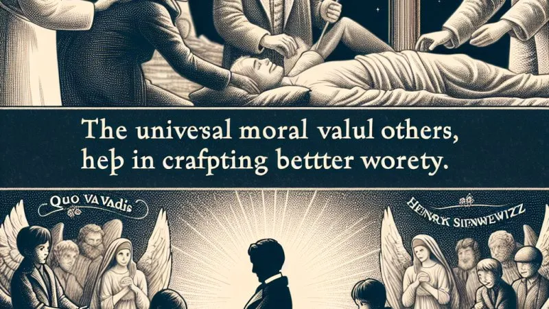 Innym przykładem, gdzie wartość pomagania jest eksponowana, jest dzieło Henryka Sienkiewicza „Quo vadis”. W tym utworze możemy obserwować postawę chrześcijan, którzy mimo prześladowań i cierpień, które ich spotykają, nadal są gotowi nieść pomoc nawet swoim największym wrogom. Przykładem może być tu scena, w której chrześcijanie opiekują się ludźmi poranionymi i cierpiącymi po pożarze Rzymu. Wykazują przy tym wielką odwagę i miłość bliźniego, nie zważając na podziały społeczne czy polityczne. Ich postawa wskazuje na to, że pomaganie innym jest nie tylko aktem dobroci, ale i rodzajem świadectwa głębokiej wiary i wytrwałości w dobru, które zawsze triumfuje nad złem.