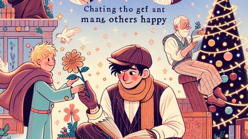 Kolejnym przykładem jest postać Ebenezera Scrooge'a z "Opowieści wigilijnej" Charlesa Dickensa. Początkowo Scrooge jest skąpym, zgorzkniałym człowiekiem, który nie dostrzega wartości w czynieniu dobra. Jego przemiana następuje w wyniku spotkań z duchami, które uświadamiają mu, że prawdziwe szczęście i spełnienie można odnaleźć tylko poprzez dobroć i zrozumienie dla innych. Scrooge zaczyna dostrzegać, że jego dotychczasowy styl życia nie przynosi mu radości ani satysfakcji, a wręcz przeciwnie, izoluje go od innych ludzi. Po przeżyciach wigilijnej nocy postanawia zmienić swoje życie, ofiarowując pomoc i wsparcie potrzebującym. Dzięki temu staje się bardziej szczęśliwy i spełniony, odkrywając, że to, co czynimy dla innych, wraca do nas i wzbogaca nasze życie. Historia Scrooge'a pokazuje, że czynienie dobra może całkowicie odmienić życie jednostki, a także pozytywnie wpłynąć na społeczność, w której żyje.