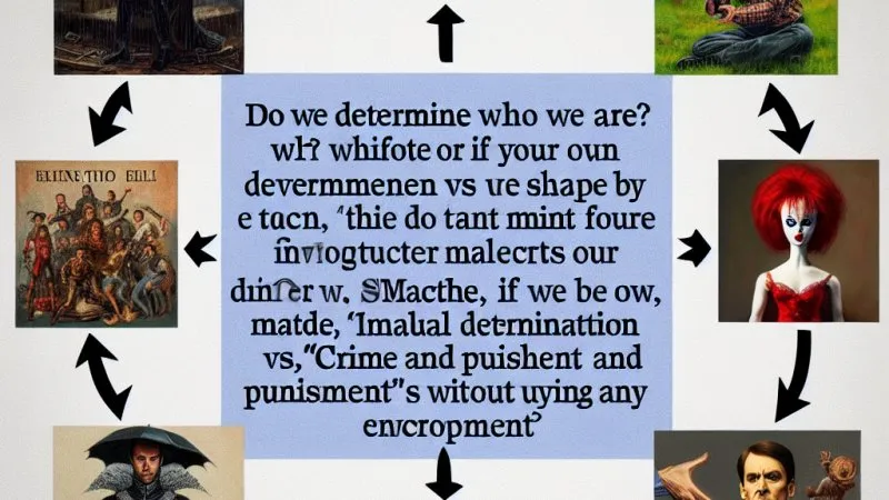 Innym przykładem z literatury, który ukazuje pewną dychotomię między wolną wolą a działaniem wpływów zewnętrznych, jest "Zbrodnia i kara" Fiodora Dostojewskiego. Rodion Raskolnikow, główny bohater, podejmuje decyzję o popełnieniu morderstwa na lichwiarce, by według niego, uwolnić społeczeństwo od osoby żerującej na ludzkiej biedzie. Raskolnikow usprawiedliwia swoją zbrodnię przekonaniami moralnymi oraz teorią, według której wielcy ludzie mają prawo przekraczać zasady moralne w imię wyższych celów.