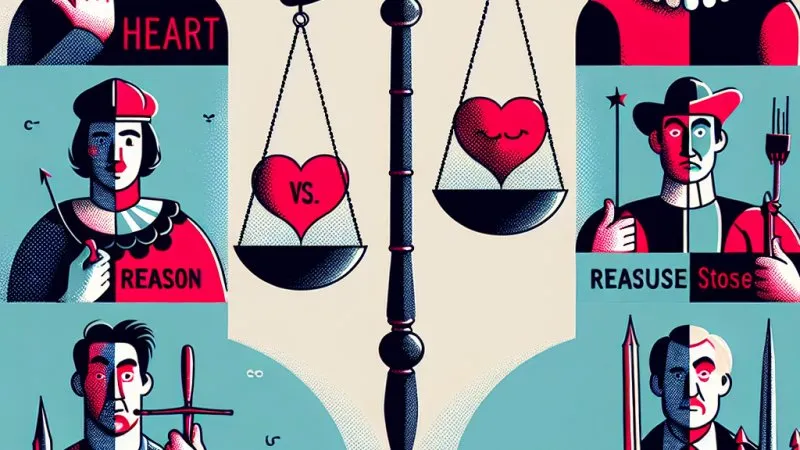 W literaturze postacie takie jak Hamlet, Romeo, Jacek Soplica, Wokulski i doktor Rieux ilustrują dylematy serca i rozumu. Kluczem jest równowaga, by unikać katastrof i osiągać harmonię w decyzjach. ⚖️📚