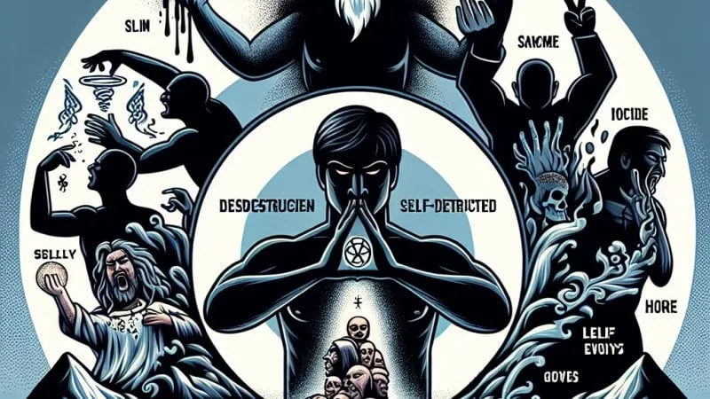 Podobny problem dotyczy postaci z "Dziadów". Konrad, główny bohater, wydaje się być spętanym własnym złem i nieszczęściem. Jego postawa pesymistyczna, brak wiary w człowieka i świat sprawiają, że nie jest w stanie osiągnąć swoich celów. Jego czarnowidztwo i ignorancja względem dobra nie pozwalają mu cieszyć się życiem ani spełniać swoje pragnienia. Wybór postawy życiowej opartej na negacji wszystkiego, prowadzi go na samo dno.