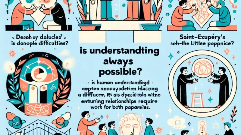 Zupełnie inną perspektywę oferuje "Mały Książę" de Saint-Exupéry'ego, w którym porozumienie i głęboka więź międzyludzka są przedstawione jako możliwe do osiągnięcia, nawet pomimo początkowych różnic. Ta filozoficzna baśń przybliża historię spotkań Małego Księcia z mieszkańcami różnych planet, w tym z pilotem, który rozbija się na Saharze. Dialogi między Małym Księciem a spotkanymi postaciami, pełne metafor i głębokich refleksji, są esencją procesu wzajemnego poznawania i zrozumienia. Co więcej, uczą one, że porozumienie wymaga otwartości, cierpliwości i czasu. W szczególności historia lisa, która tłumaczy Małemu Księciu, że "dobrze widzi się tylko sercem. Najważniejsze jest niewidoczne dla oczu", podkreśla, że porozumienie to nie tylko wymiana słów, ale przede wszystkim zdolność do uczucia i empatii.