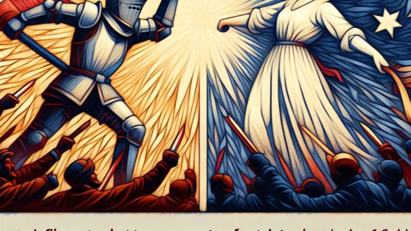 Na przykładzie „Krzyżaków” Henryka Sienkiewicza możemy zobaczyć, jak patriotyzm wyrażony przez walkę przenika całą powieść. Główny bohater, Zbyszko z Bogdańca, walczy w obronie swojej ojczyzny przed Zakonem Krzyżackim, co jest wyrazem głębokiego patriotyzmu i gotowości do poświęceń. Walka ta, zbrojna, pełna jest dostojeństwa i heroizmu, który buduje wizerunek mężczyzny silnego, odważnego, gotowego stanąć w obronie słabszych. Można by wnioskować, że literatura wychwala walkę jako najszczytniejszą formę patriotyzmu, zdolną przynieść największe korzyści narodowi.