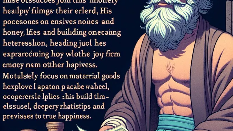 Harpagon, postać z komedii Moliera "Skąpiec", jest skąpym i chciwym człowiekiem, który nie doznaje radości z innych wartości. Jego obsesja na punkcie pieniędzy ogranicza go w budowaniu głębszych relacji i pozbawia prawdziwego szczęścia. Skupienie się wyłącznie na materialnych dóbrach nie daje satysfakcji i prowadzi do samotności.