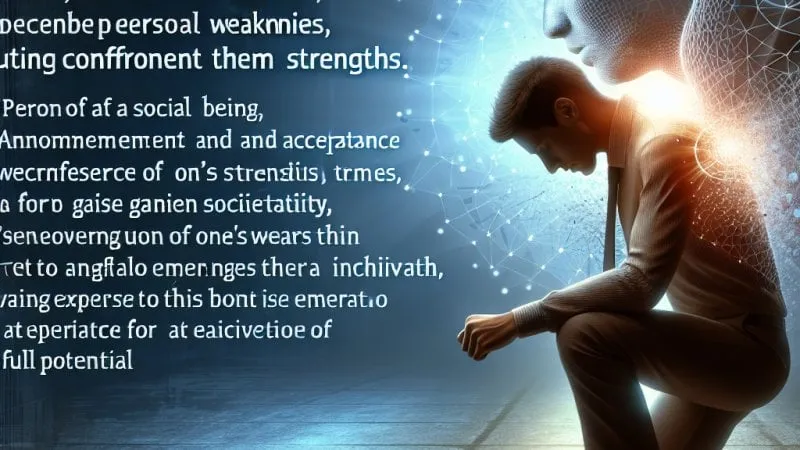 Człowiek, jako istota społeczna, musi stawić czoła swoim słabościom. Walka ta ma istotny wpływ na jednostkę i społeczeństwo. Uświadomienie i akceptacja swoich słabości oraz dążenie do ich przekształcenia w mocne strony jest kluczowe. Mocne strony rozwijają empatię i zdobywają doświadczenie, co pozwala na osiągnięcie pełnego potencjału. ✅