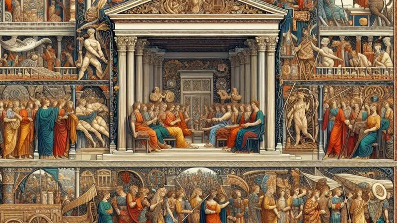 Kolejnym ważnym elementem, który Sienkiewicz zawarł w swojej powieści, jest świat polityki i dworu cesarskiego. Postać cesarza Nerona oraz jego otoczenia, jak Petroniusz, Tigellinus czy Poppea, to doskonałe przykłady przedstawienia mechanizmów władzy w starożytnym Rzymie. Neron jest ukazany jako przykład despotycznego władcy, którego rządy charakteryzowały się arbitralnością, okrucieństwem oraz licznymi intrygami. Autor nie tylko opisuje sam dwór cesarski, ale także mechanizmy i ceremonie związane z procesem podejmowania decyzji, co ukazuje jak władza funkcjonowała w tamtym czasie. Dzięki temu czytelnik może lepiej zrozumieć, jak wyglądały struktury polityczne i jak duże znaczenie miały intrygi oraz osobiste ambicje przy podejmowaniu decyzji.