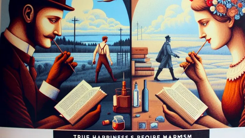 Wokulski podchodzi do szczęścia indywidualistycznie i materialistycznie, dążąc do realizacji osobistej, idealistycznej wizji szczęścia poprzez zdobywanie i posiadanie. Jego pragmatyzm i wiedza ekonomiczna mają być środkami do osiągnięcia celów uczuciowych, co niestety prowadzi go do porażki.Z kolei Justyna Orzelska stawia na wspólnotę, altruizm i współpracę. Jej podejście do szczęścia jest zakorzenione w wartości pracy i relacji z innymi ludźmi. Adaptuje się do nowych warunków i znajduje satysfakcję w prostych, codziennych obowiązkach, które przynoszą radość i poczucie spełnienia.