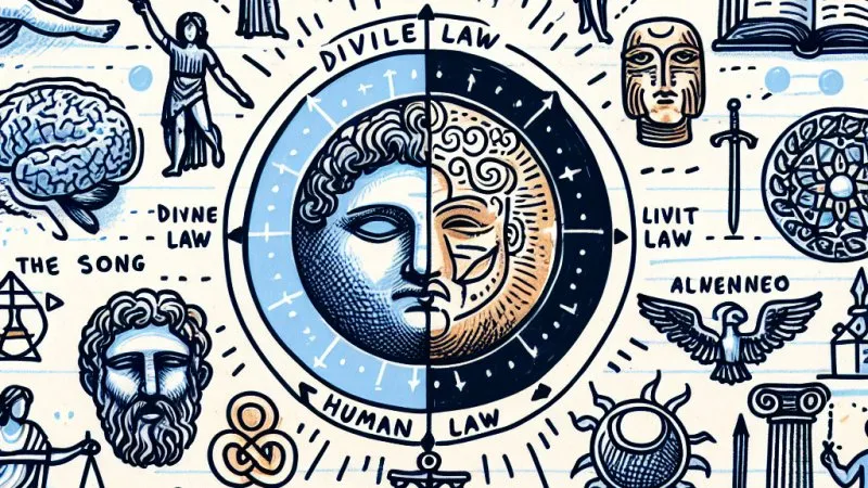 Prawa boskie są niezmienne i wieczne, wywodzą się z religii, zaś prawa ludzkie są zmienne i ustanawiane przez władców. Konflikt ten prowadzi do tragedii głównych bohaterów.