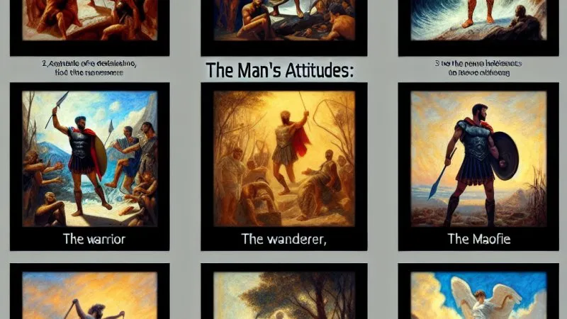 Druga część mitu natomiast ukazuje człowieka, który, chociaż pragnie odnaleźć szczęście i miłość, jest niezdolny do przekraczania granic i akceptacji. Jego słabość, wynikająca z nadmiernego uczucia i strachu, uniemożliwia mu stanie się dzielnym wojownikiem.