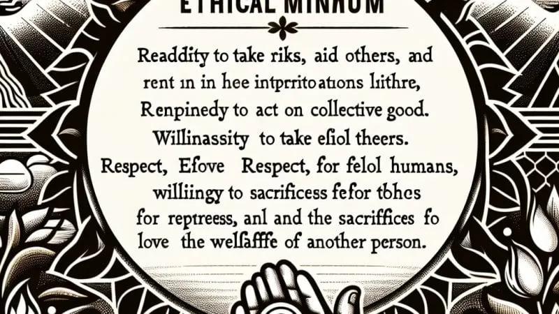Minimum etyczne powinno polegać na gotowości do podjęcia ryzyka, pomocy innym oraz działaniu w dobru wspólnym. Wartością jest również szacunek i empatia wobec drugiego człowieka oraz gotowość do poświęceń dla miłości i dobra drugiego człowieka. ?✅