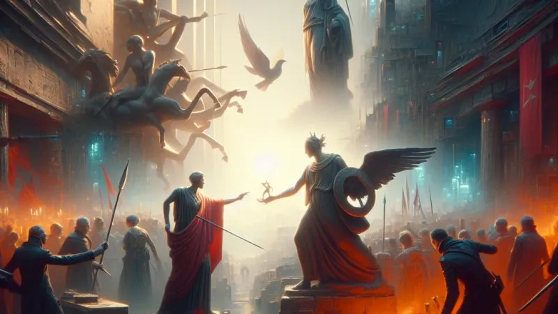 W całej historii literatury oraz innych form sztuki, motyw buntownika zajmuje ważne miejsce. Buntownicy to postaci, które kwestionują zastane porządki, podważają autorytety i często stają na przekór temu, co uznawane jest za normę. Ich działania mogą być zarówno destrukcyjne, jak i konstruktywne, a ich obecność stawia ważne pytania o znaczenie wolności, sprawiedliwości i indywidualności. W literaturze antyku ten motyw znajduje swoje odzwierciedlenie w wielu dziełach, ale szczególnie wyraźnie widać go w „Antygonie” Sofoklesa. W poniższej rozprawce chciałbym przyjrzeć się temu dziełu w kontekście motywu buntownika oraz zestawić je z innym przykładem z literatury współczesnej, a mianowicie z postacią Winstona Smitha z „Roku 1984” George’a Orwella.
