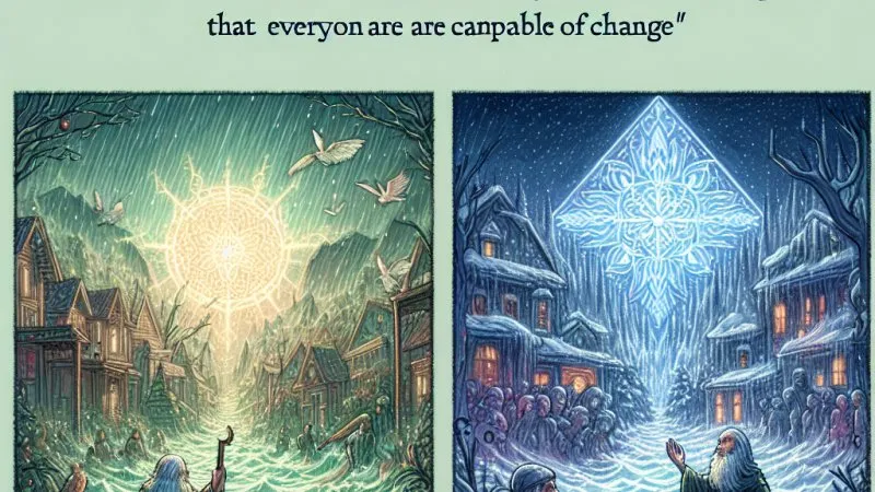 Obie postacie – Kmicic i Scrooge – przechodzą głęboką przemianę wewnętrzną, która całkowicie odmienia ich życie. W przypadku Kmicica, proces ten jest motywowany miłością do ojczyzny i odpowiedzialnością za bliskich. Scrooge z kolei odnajduje sens życia poprzez zrozumienie wartości, jakimi są miłość i empatia. Obaj bohaterowie pokazują, że niezależnie od okoliczności, człowiek ma zdolność do samokrytyki i wielkiej zmiany duchowej. Literatura poprzez swoje postacie uczy nas, że przemiany wewnętrzne mogą być kluczem do odkrycia pełniejszego sensu życia i harmonii z otaczającym światem.