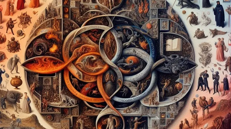 Jednym z fundamentalnych dzieł literatury, które przedstawia walkę dobra ze złem, jest „Boska Komedia” Dantego Alighieri. W tej epickiej podróży przez piekło, czyściec i raj Dante ukazuje różne aspekty ludzkiej duszy, podkreślając walkę pomiędzy cnotą a grzechem. Wędrówka przez piekło jest ilustracją potęgi zła, które kusi ludzi, prowadząc ich do upadku. W czyśćcu, z kolei, grzesznicy oczyszczają się z win, co ukazuje możliwość triumfu dobra dzięki pokucie i autorefleksji. Wyjątkowe jest tutaj przedstawienie nie tylko piekła jako miejsca zła, ale także czyśćca jako obszaru walki, gdzie dobro w postaci nadziei i skruchy zaczyna zwyciężać. W końcu raj jest pełen harmonii i ekstazy, ukazując triumf dobra i ostateczne zbawienie.