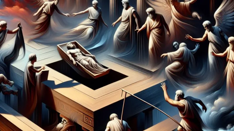W "Antygonie" widzimy, jak losy głównych bohaterów są nieodwracalnie splątane w sieciach przeznaczenia. Kreon, król Teb, wydaje zarządzenie, że jedynie jeden z dwóch braci poległych na polu walki zasługuje na godne pochowanie, a drugi ma być pozostawiony bez ceremonii pogrzebowej. Antygona, siostra poległych, postanawia złamać ten zakaz i pochować swojego brata, niezależnie od konsekwencji. Jest to akt oparty na wartościach moralnych i poczuciu sprawiedliwości, ale jednocześnie prowadzi do tragicznych rezultatów. Bohaterka z trudem akceptuje swoje przeznaczenie i wybiera śmierć, wierząc w większą wartość swojego czynu.