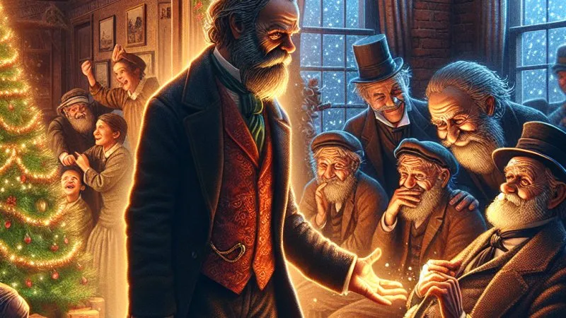„Opowieść wigilijna” Dickensa ukazuje przemianę skąpego Scrooge’a, który odkrywa, że prawdziwe szczęście płynie z relacji z innymi, nie z bogactwa. ?❤️