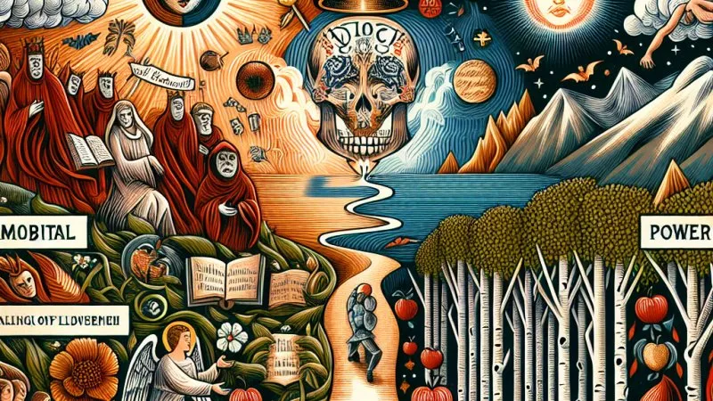 Dante Alighieri w swoim dziele „Boska komedia” opisuje podróż przez Piekło, Czyściec i Raj. Jego poemat epicki jest pełen głębokich odniesień teologicznych, politycznych i filozoficznych. Dzieło Dantego jest traktatem na temat moralności, zbawienia i kondycji ludzkiej duszy. Posługując się alegorią, Dante tworzy kompleksową wizję wszechświata, w której każde działanie ma swoje konsekwencje w życiu pośmiertnym.