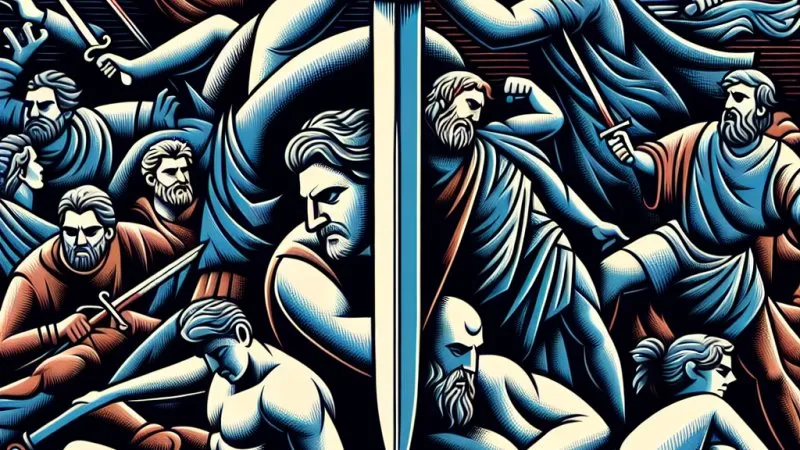 Tragizm postaci literackiej to ich walka z losem i wewnętrznymi konfliktami. Makbet, Edyp i św. Piotr ilustrują tę tematykę w różnych kontekstach. ?⚔️