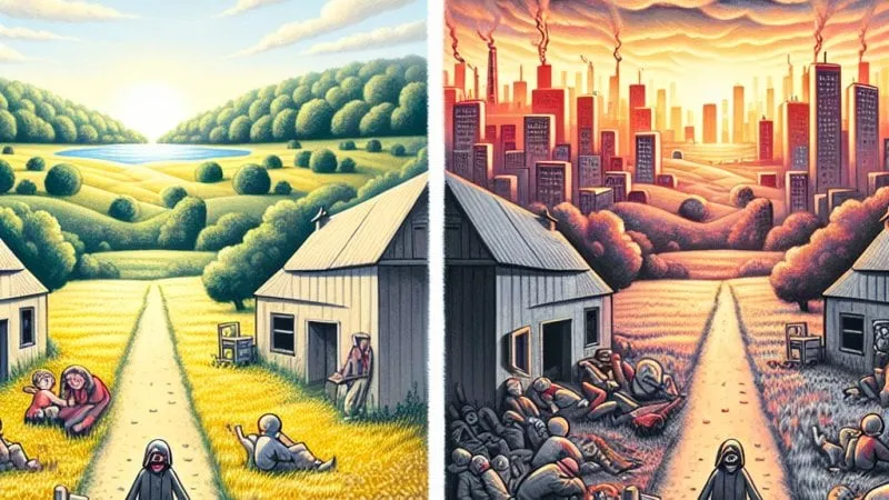 Zgoła odmiennym przykładem, ukazującym negatywny wpływ przestrzeni, jest powieść Bolesława Prusa "Lalka". Warszawa końca XIX wieku staje się areną społecznych kontrastów i niesprawiedliwości. Przestrzeń miasta, z jego zatłoczonymi ulicami i dystynkcjami klasowymi, wpływa na postawy i decyzje bohaterów. Stanisław Wokulski, protagonistą powieści, zmaga się z własnymi ambicjami i pragnieniami w świecie, który nie zawsze jest im przychylny. Miasto wywiera presję, prowadzi do rozczarowań i bolesnych wniosków. Prus ukazuje, jak środowisko wielkomiejskie, pełne zgiełku i rywalizujących interesów, może prowadzić do alienacji i konfliktów wewnętrznych.