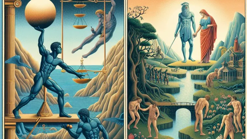 Problematyka winy i kary jest jednym z fundamentalnych zagadnień literatury, filozofii i religii. Historia ludzkości obfituje w opowieści o konsekwencjach ludzkich działań, które kształtują naszą moralność i etyczne postawy. Wybitne dzieło Jana Parandowskiego, „Mitologia” (część I dotycząca Grecji) oraz biblijna historia Adama i Ewy z Księgi Rodzaju, stanowią doskonałe przykłady literackie, które ilustrują te kwestie. W niniejszej rozprawce omówimy te dwa teksty, analizując, jak przedstawiają one temat winy i kary.