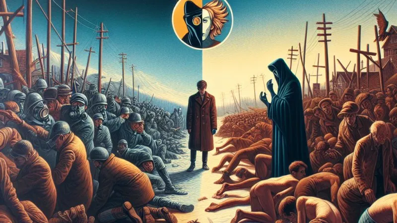 Jednym z najbardziej emblematycznych dzieł, które poruszają ten temat, jest "Dżuma" Alberta Camusa. Powieść opisuje miasto Oran podczas epidemii, gdzie mieszkańcy są zmuszeni do walki o przetrwanie. Doktor Rieux, główny bohater, doskonale ilustruje ideę człowieczeństwa w sytuacji zagrożenia. Pomimo osobistego ryzyka, poświęca się opiece nad chorymi, kierując się przede wszystkim empatią i troską o innych. W jego działaniach widać, że człowieczeństwo, czyli chęć niesienia pomocy i współczucie, przeważa nad godnością osobistą. Rieux nie szuka chwały ani uznania, lecz dąży do ulżenia w cierpieniu swoich bliźnich. Jego postawa pokazuje, że w obliczu zagrożenia, człowieczeństwo może dominować nad potrzebą zachowania godności osobistej.
