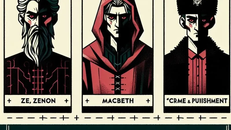 Ludzkie sprzeczności ukazane na przykładzie Zenona, Makbeta i Raskolnikowa prowadzą bohaterów do moralnych dylematów i tragicznych upadków.
