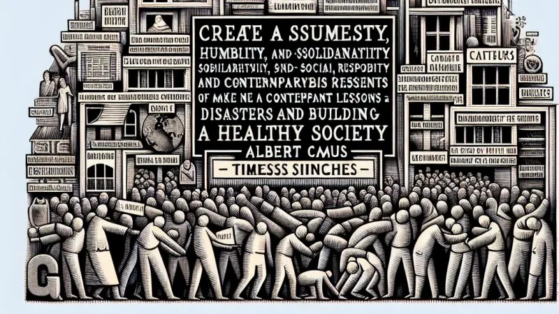 Kolejnym aspektem, na który zwraca uwagę Camus, jest reakcja społeczeństwa na kryzys. Autor zwraca uwagę, że w obliczu tragedii społeczności mogą działać solidarnie lub też popadać w egoizm. Dzielenie się odpowiedzialnością, współdziałanie, a także empatia to wartości, które stają się szczególnie ważne, gdy wydarza się coś tak tragicznego jak epidemia. Poprzez postaci księdza Paneloux, doktora Rieux, czy urzędnika Tarrou, autor przybliża różne sposoby radzenia sobie z kryzysem i ideę heroizmu codzienności.