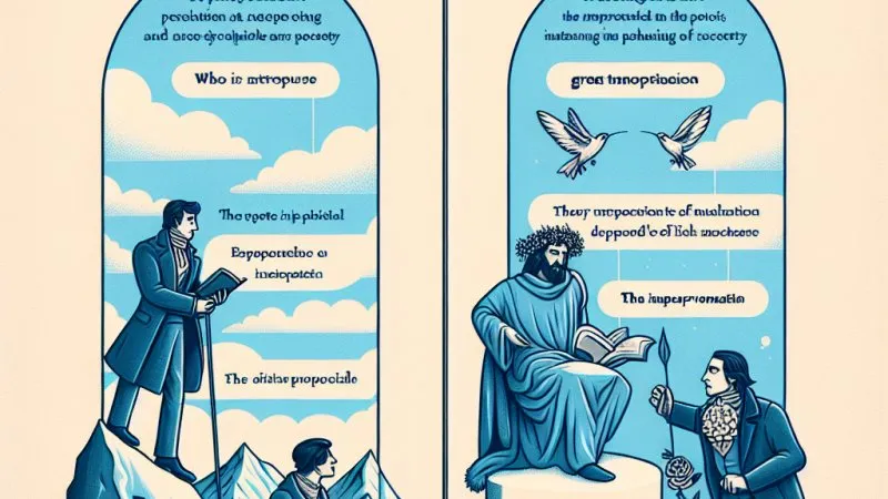 Romantyczna rola poety w społeczeństwie jako przewodnika duchowego: Kordian vs Konrad. Oba bohaterów mają różne podejście do roli poety, od introspekcji po aktywne kształtowanie rzeczywistości.✅