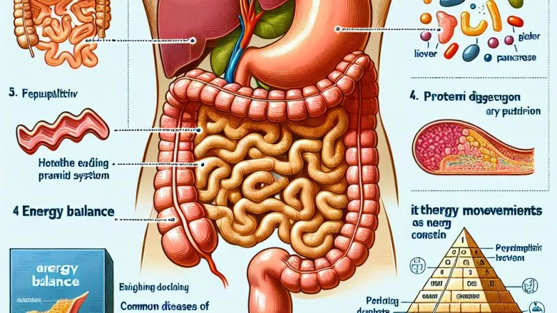 Budowa układu pokarmowego, rodzaje zębów, ruchy perystaltyczne, trawienie białek, rola wątroby i trzustki, bilans energetyczny, piramida zdrowego żywienia, choroby układu pokarmowego.