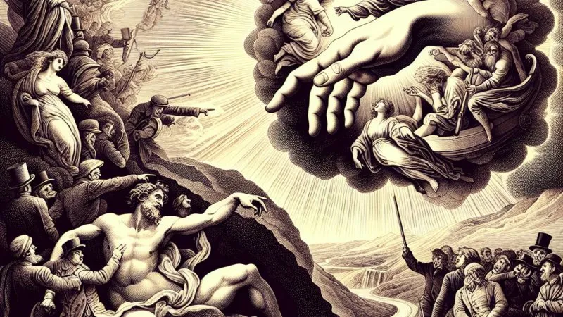Krasiński, jako świadek burzliwego XIX wieku, obserwował narastające napięcia społeczne, co miało bezpośredni wpływ na jego twórczość. „Nie- boska komedia” jest swoistą próbą przewidzenia wyników rewolucji oraz potencjalnych skutków społecznych burzliwych przemian. Krasiński doskonale rozumiał, że rewolucje nie niosą jedynie wyzwolenia, ale także mogą być źródłem nowych form tyranii i chaosu. Przebieg konfliktu w dramacie oddaje te obawy.