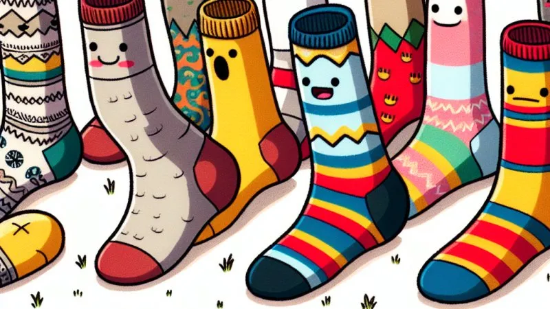 Główne postaci fantastyczne to oczywiście skarpetki, każda z nich obdarzona unikalnymi cechami i własnym życiem. Lewa, czarna skarpetka jest elegancka i wykonana z wysokiej jakości materiału. Jej ambitny charakter pragnie sławy i rzeczywiście staje się gwiazdą, udowadniając, że marzenia są na wyciągnięcie ręki, nawet dla skarpetki.