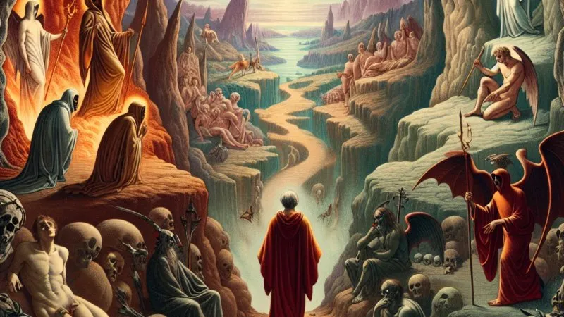 Podsumowując, duchowa wędrówka Dantego symbolizuje podróż od grzechu ku oświeceniu i duchowej odnowie. Przewodnicy i spotykane dusze stanowią nieodłączne elementy tej wędrówki, wpływając na rozwój duchowy Dantego. W końcowym rozrachunku "Boska Komedia" jest nie tylko opowieścią o podróży przez zaświaty, ale także uniwersalnym studium człowieczeństwa, moralności i wiary.