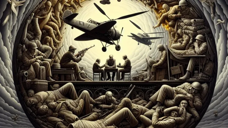 Nowakowski w swoim "Stanie wojny" podejmuje próbę zobrazowania obu stron konfliktu. Autor nie ocenia wprost, nie wydaje wyroków. Przedstawia rzeczywistość w sposób realistyczny, ukazując winę i odpowiedzialność zarówno po stronie władzy, jak i wśród jednostek. Jest to podejście, które może wydawać się niepopularne w kontekście ówczesnych nastrojów społecznych, ale dzięki temu opowiadanie zyskuje na głębi i wielowymiarowości.