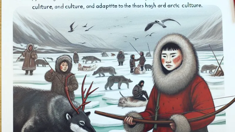 Życie Inuitów na Grenlandii, głównych bohaterów książki Centkiewiczów, jest nieodłącznie związane z surowymi warunkami klimatycznymi tej części świata. Arktyczny klimat charakteryzuje się niskimi temperaturami, silnymi wiatrami oraz długimi, mroźnymi zimami. Mieszkańcy Grenlandii nauczyli się przystosowywać do tych ekstremalnych warunków, co stało się kluczowym elementem ich codziennego życia. Przystosowanie to widoczne jest nie tylko w ubiorach i budowlach, ale również w metodach zdobywania pożywienia oraz organizacji pracy i spędzania czasu.Codzienne zajęcia Inuitów różnią się w zależności od pory roku. Latem skupiają się na gromadzeniu zapasów, które są niezbędne do przetrwania zimy. W tym okresie odbywają się liczne polowania na foki, wieloryby oraz ptaki, a także zbieranie jagód i innych roślin. Zdobyte zapasy są starannie przechowywane, aby mogły służyć przez długie miesiące mroźnej zimy. Zimą życie Inuitów toczy się głównie we wnętrzu igloo, gdzie spędzają czas na naprawie sprzętu, szyciu odzieży i rzeźbieniu w kości lub drewnie. Zima to również czas na opowieści, gry i zabawy, które integrują społeczność i umacniają więzi rodzinne.