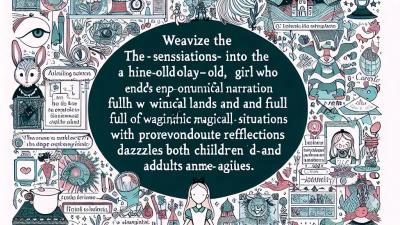 Na poziomie fabuły, książka jest pełna kolorowych miejsc i postaci, które stanowią nieodłączny element jej tajemniczości. Alicja, ścigając Białego Królika, wchodzi w świat, gdzie logika codziennego życia zostaje zakwestionowana. Spotyka Kotkę Dziwaka, która swoim żartobliwym uśmiechem i filozoficznymi refleksjami wprowadza element nieprzewidywalności. Szalony Kapelusznik i Marcowy Zając zapraszają ją na herbatkę, która jest przykładem czystego absurdu – czas jest tam zamrożony, a zasady nie mają znaczenia. Te sceny, pełne intensywnych kolorów i niesamowitych zdarzeń, wciągają czytelnika w świat, który fascynuje i intryguje.